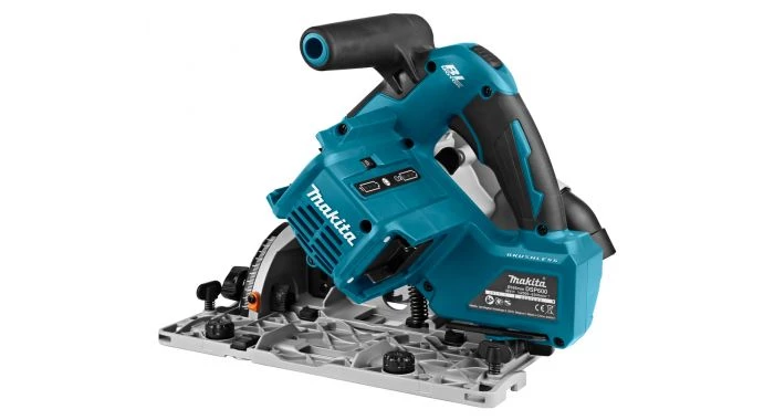 Scie plongeante pour utilisation avec rail de guidage, idéale pour le débit précis de panneaux ou de plateaux en bois massif et pour la découpe d’évidements rectilignes.